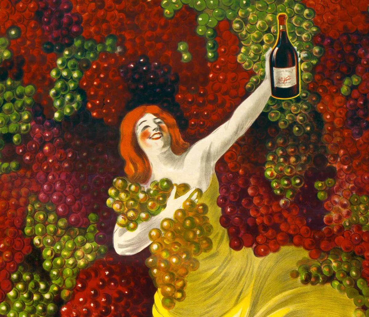 Leonetto Cappiello · 1907 · Póster de licor alegre con bailarina vestida de amarillo y racimos de uvas
