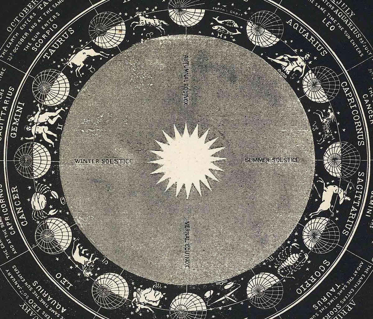 Asa Smith · 1850 · Detallada lámina del zodiaco que combina emblemas de constelaciones con nítido trazo victoriano