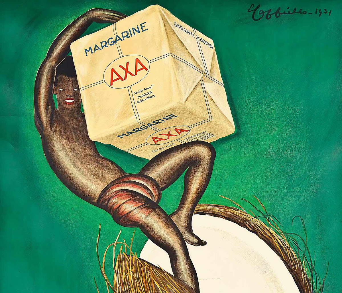 Leonetto Cappiello · 1931 · Audaz póster Margarine Axa con figura llamativa, fondo verde y toques amarillos soleados