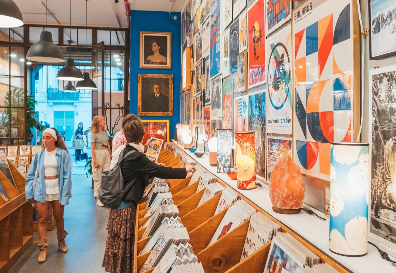 What started with one small shop in Barcelona has grown into a European network. Today you can visit five own stores — two in Barcelona, three in Lisbon — each carrying thousands of prints to browse in person. Or find us at carefully selected design shops, bookstores, and concept stores across the continent.